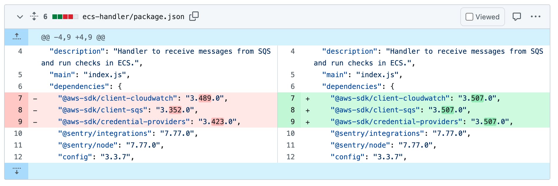 When you run an npm install command while working with code, npm automatically grabs the current version of the package and adds it to the at modules package.json file. As modules had been added throughout our development process, there were a large variety of AWS SDK versions required in different package.json files. As we’d moved to only requiring submodules, there were a large variety of versions referenced than before. This innocuous code in one of our files: