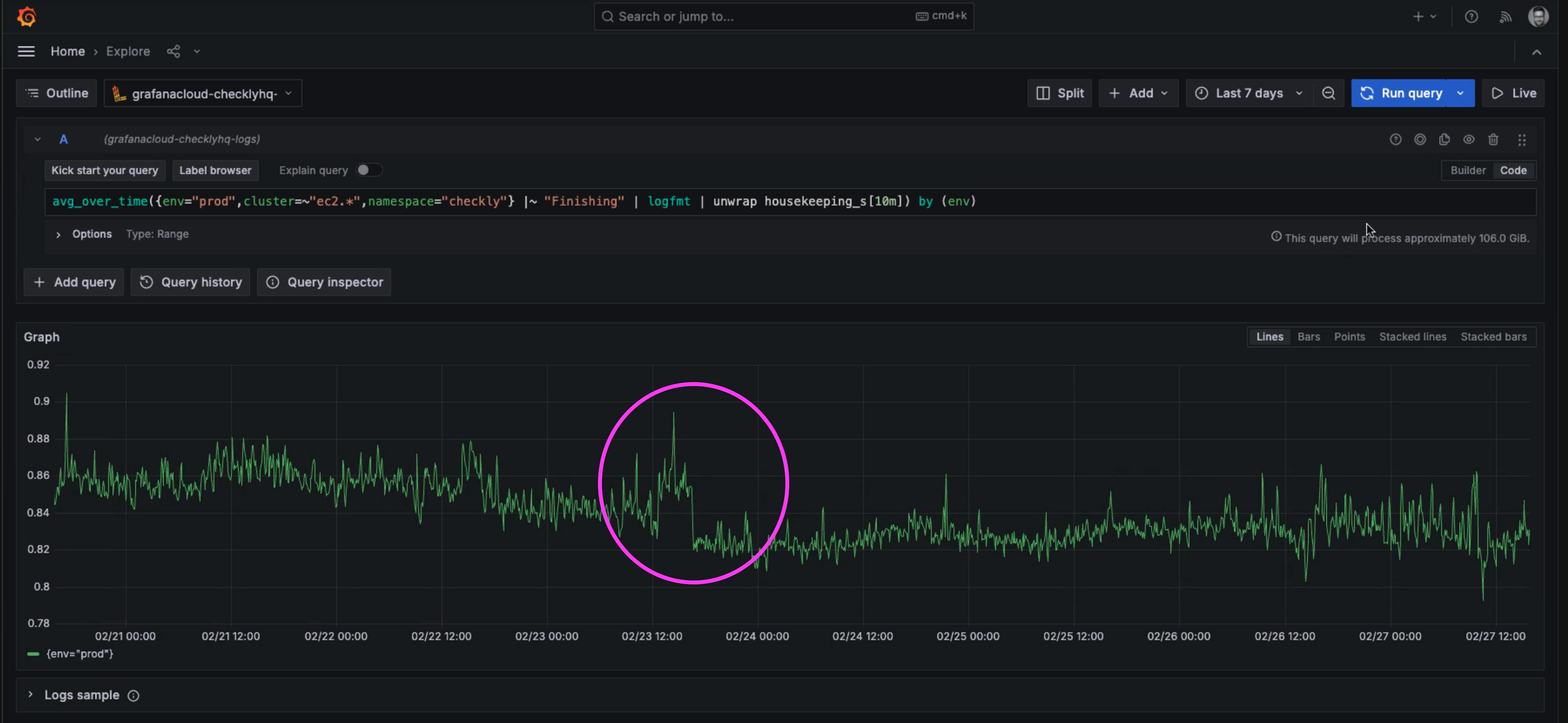 Our story begins with a mystery: a process that was taking longer than expected. The process involved was ‘housekeeping time:’ the time the Checkly service spent after a check has completed. In this time we write the trace to our datastore, send an event with the status, etc. All the stuff that needs to happen for the Checkly service to display data from the check, and notify the user if something is wrong.