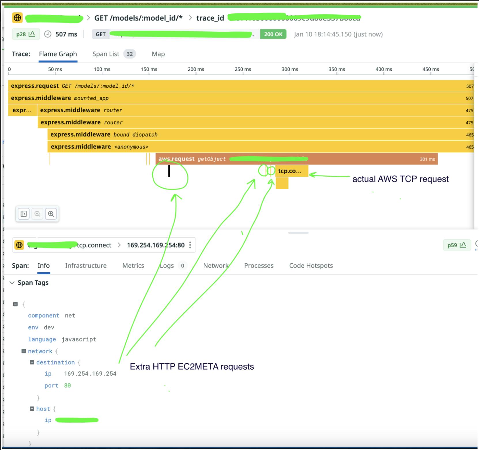 With the fix recommended in the GitHub issue, saving the results of our authentication call locally and obviating repeated requests, the issue disappeared from our traces.