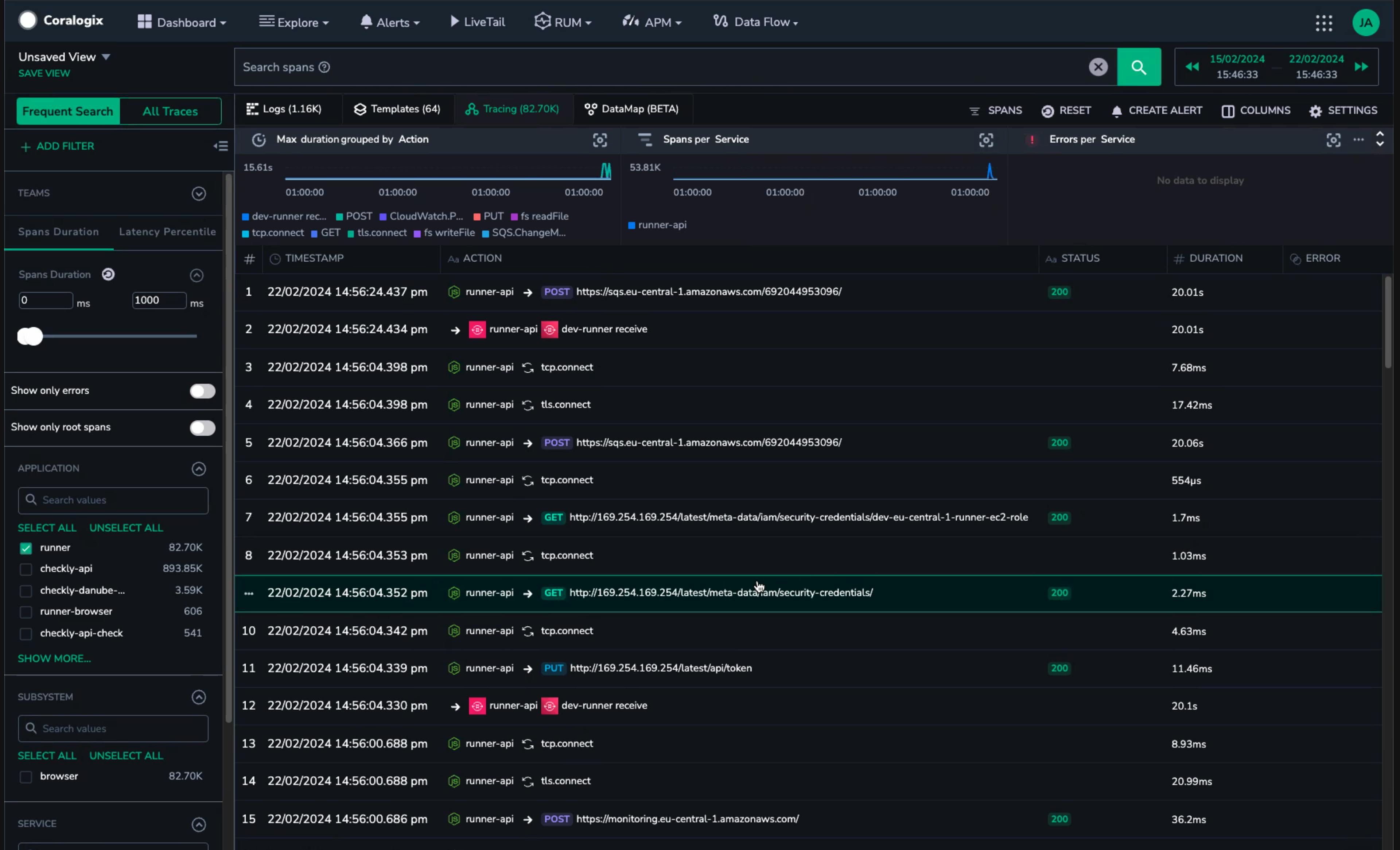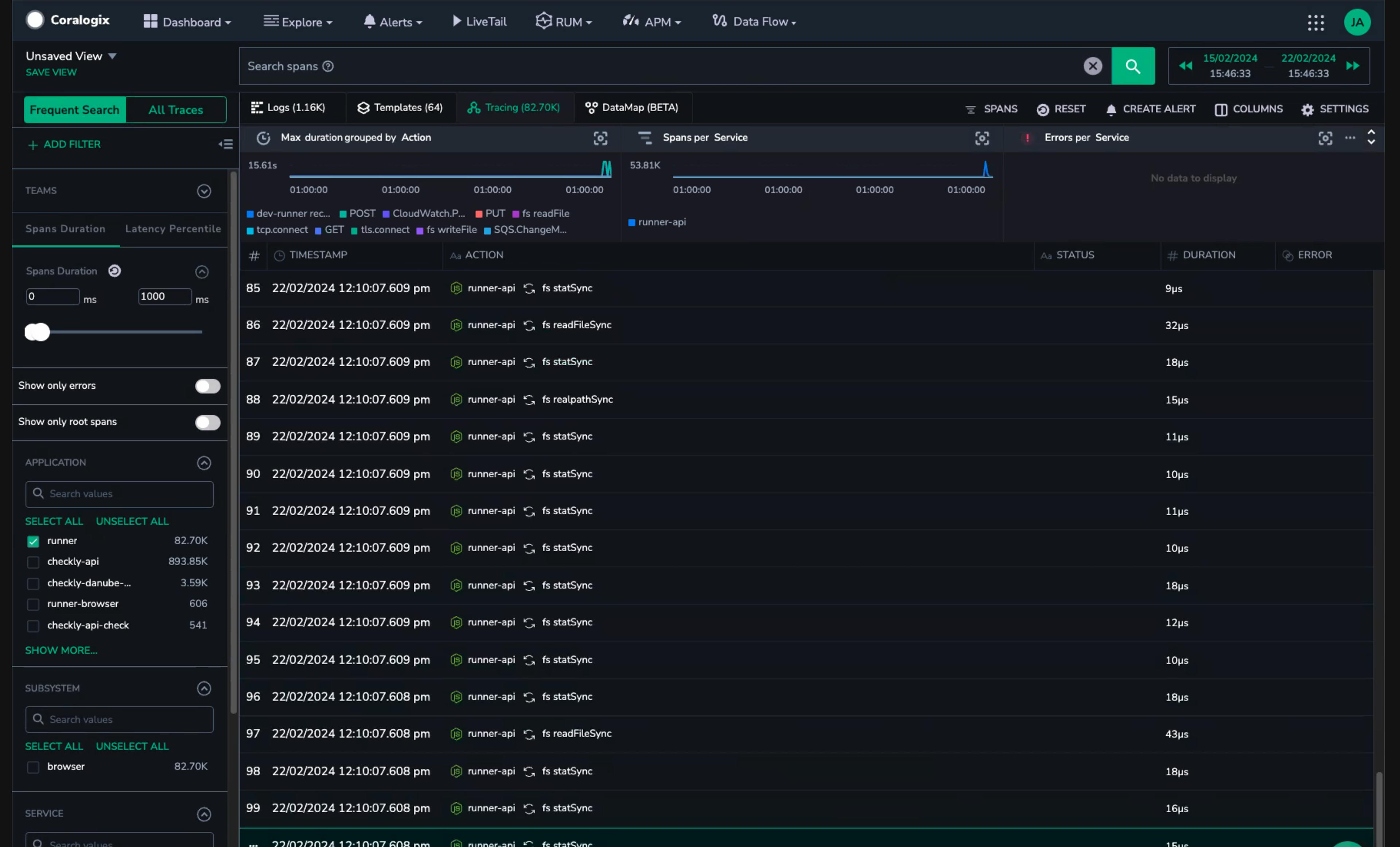 This issue was easily observable using the Coralogix dashboard to sort and filter our OpenTelemetry data. Combine your telemetry data and Coralogix to supercharge your system’s observability.