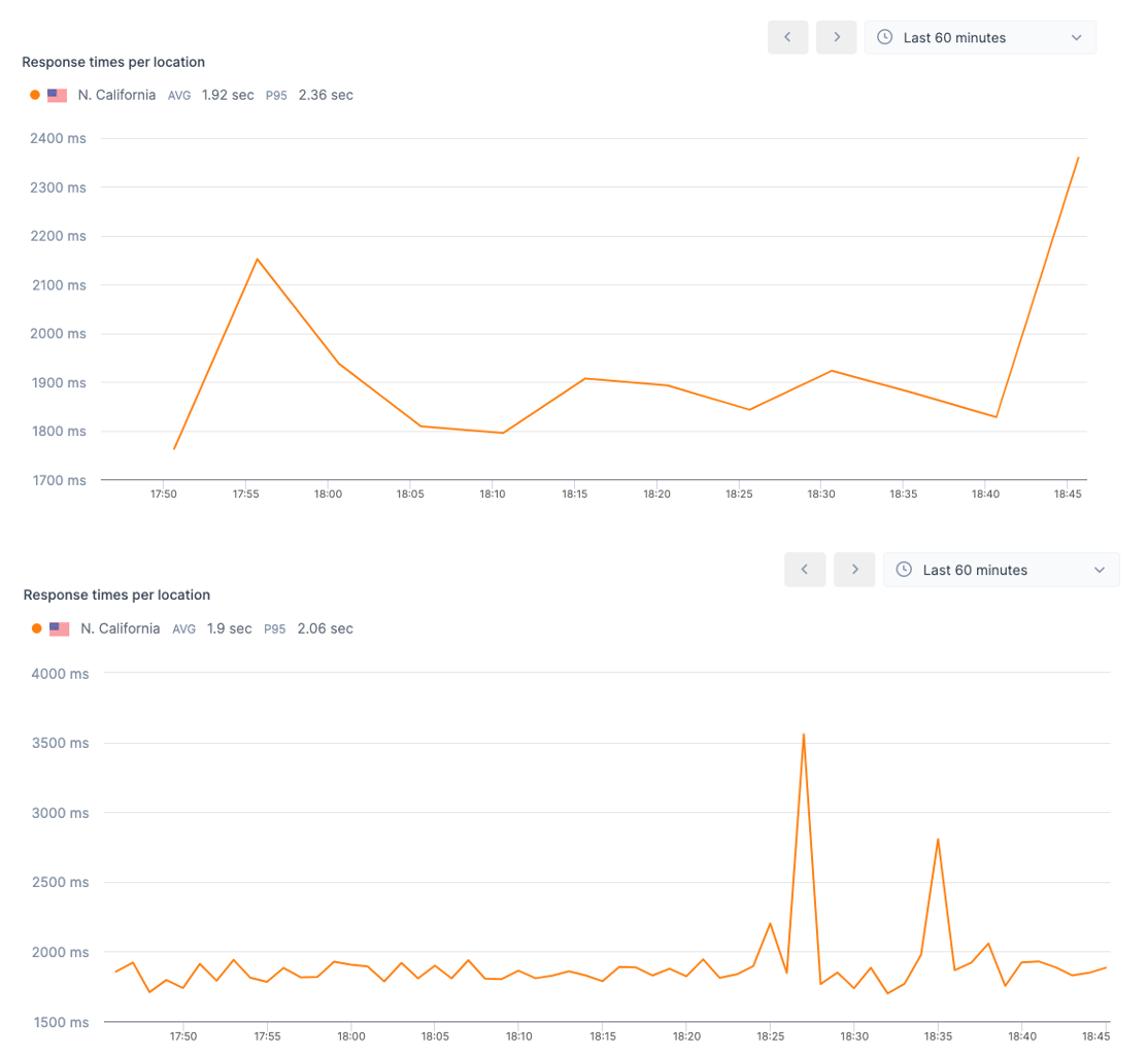 Comparison: Browser check run on 5-minute vs 1-minute interval