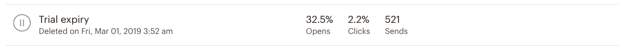 After 521 sends I stopped sending that specific email as the goal of the email — collecting feedback about the trial period — was clearly not being met.