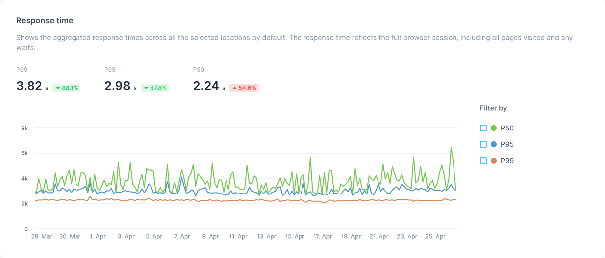 Until now, Checkly enabled you to troubleshoot single alerts, but a deep dive into the long-term performance trends was limited. That is not the case anymore.