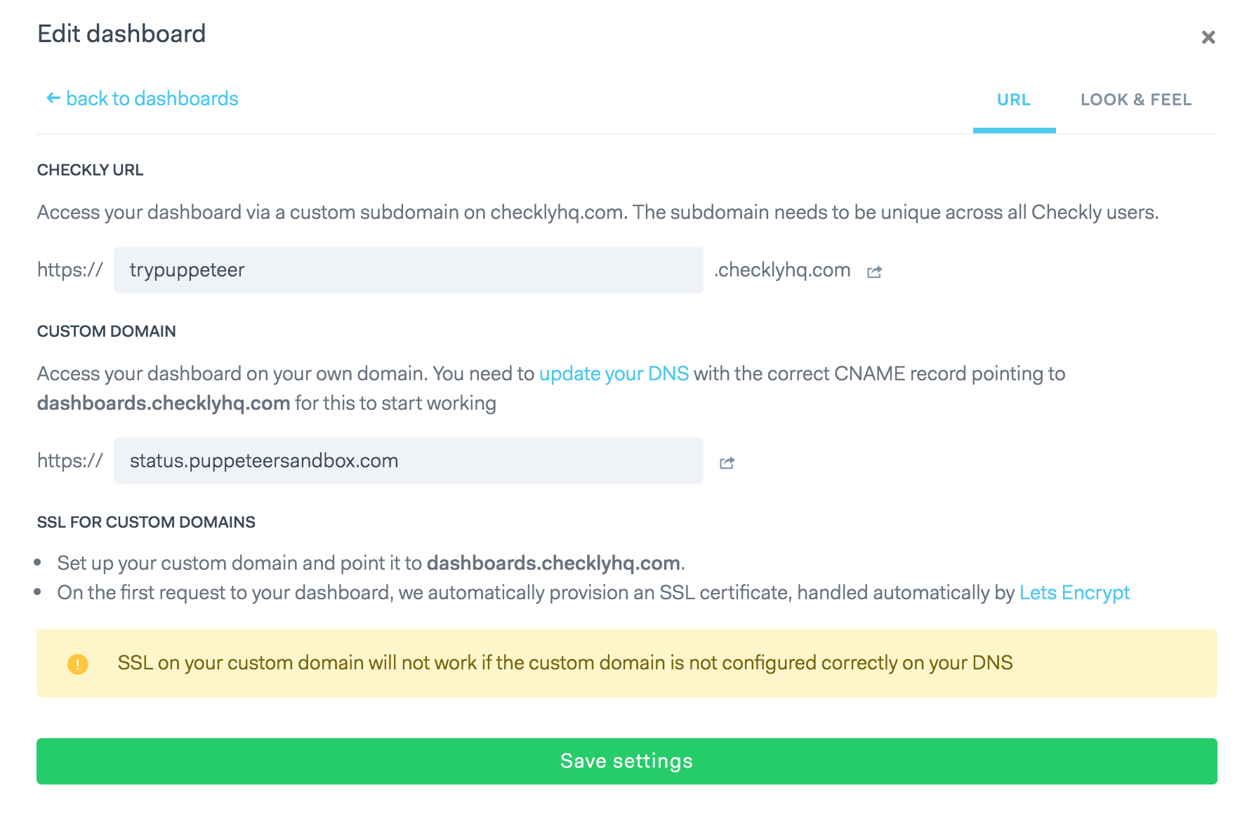 Recently I pushed a long overdue feature for Checkly: SSL for customers' public dashboards. This was kinda, sort of, totally missing when I launched and many customers asked for it.