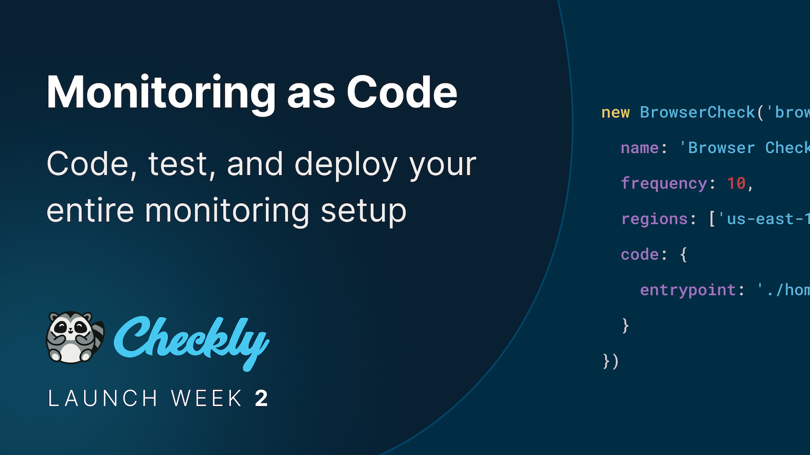 From February 27th through March 2nd we’ll be announcing and discussing a number of new Checkly innovations, including setting the monitoring as code (MaC) standard with an all-new workflow—enabled by a powerful new CLI—that will enhance the monitoring experience for you and your users.