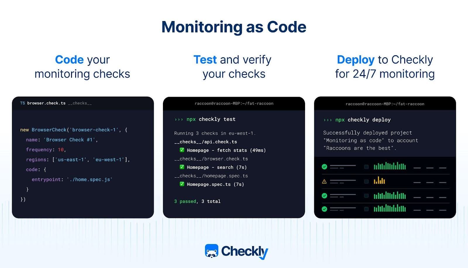 Programmable synthetic monitoring that seamlessly integrates into your existing development pipeline.