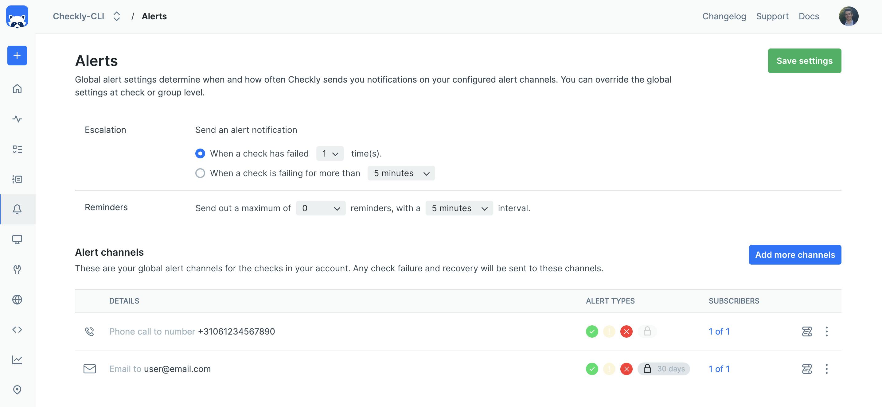 Checkly integrates with hundreds of services to quickly alert engineering teams that a problem has occurred. Send text messages, emails, Slack messages, or other alerts to tools like PagerDuty and Incident.io to notify on-call engineers and other operations teams.